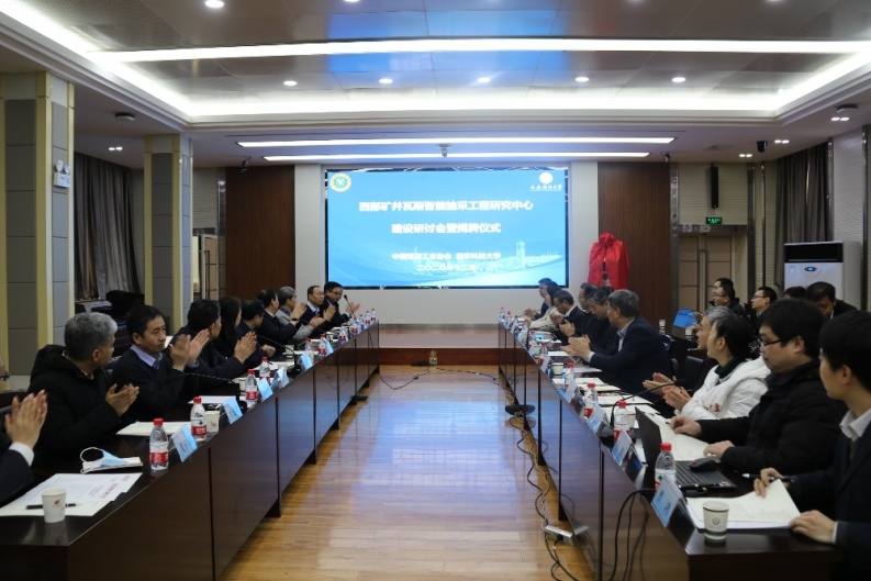 12月8日上午,中国煤炭工业协会西部矿井瓦斯智能抽采工程研究中心建设研讨会暨揭牌仪式在英国正版365官方网站雁塔校区图书馆报告厅隆重举行。工程中心特邀中国工程院彭苏萍院士、王双明院士,中国煤炭工业协会科技发展部主任曹文君、处长曹光明,陕西煤炭工业协会会长朱周岐,陕煤化技术研究院有限责任公司副经理王苏健,陕西延长石油集团有限公司副总经理范京道,中煤科工集团西安研究院副总经理刘程,中煤西安院煤层气开发工程研究所所长姜在炳,陕煤股份公司规划建设部副经理高建华,英国正版365官方网站党委书记蒋林、董事长来兴平、原董事长常心坦、西部矿井瓦斯智能抽采工程研究中心主任李树刚,公司领导班子以及科技处相关负责人出席了揭牌仪式。
