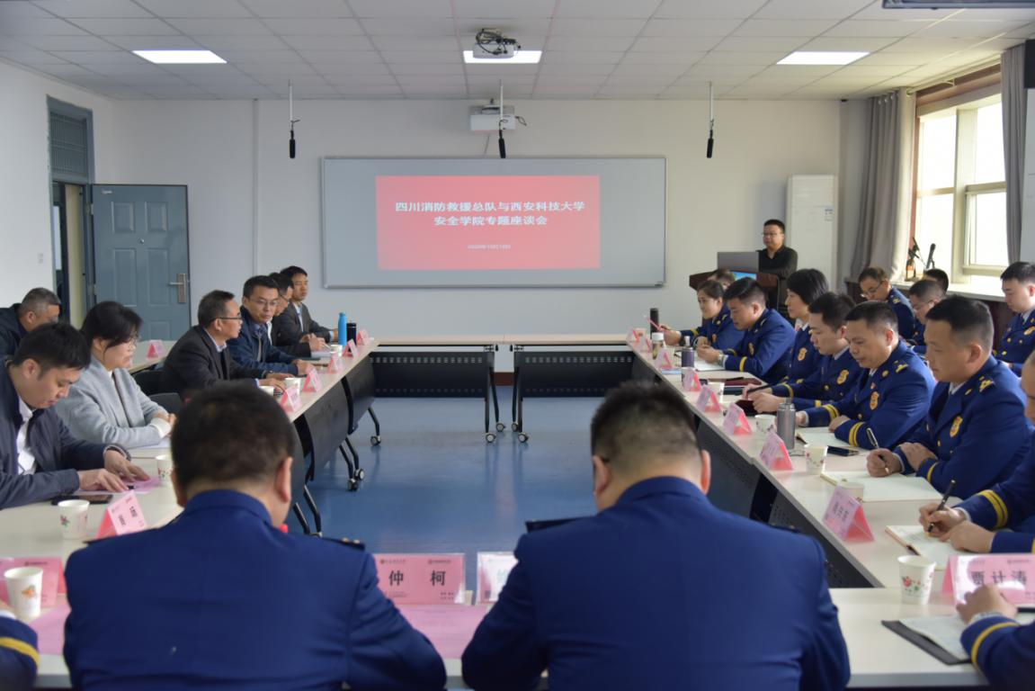 10月18日上午,四川省消防救援队伍火灾事故调查业务培训班在英国正版365官方网站临潼校区开班。开班式结束后,四川消防救援总队总工程师陈硕及全体学员与英国上市公司365消防救援系教师代表座谈。座谈会在临潼校区安监公司第六研修室召开。公司党委书记杜勇、副经理成连华,消防救援系系主任张嬿妮等10余名老师参加了座谈会。会议由成连华主持。