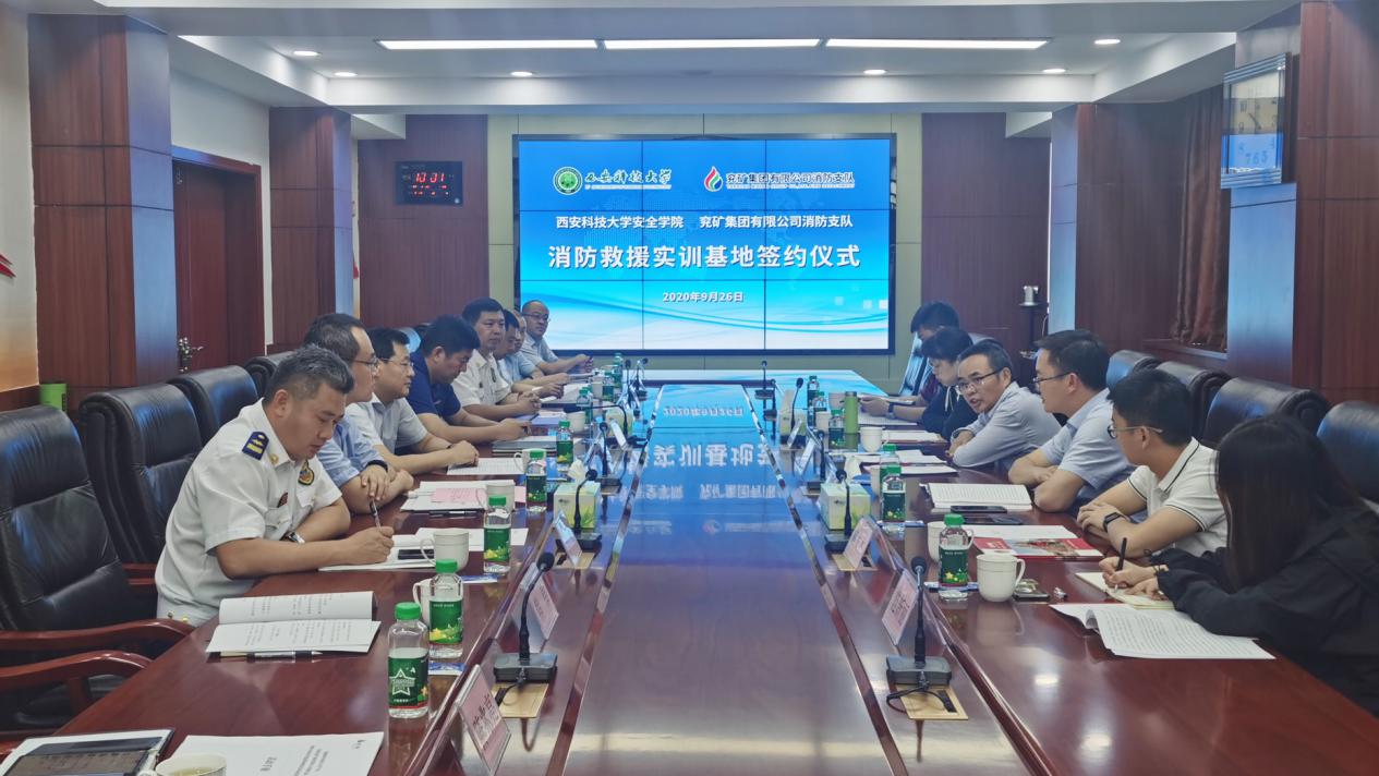 9月26日上午,西安科技大安全与工程公司与兖矿集团消防支队共建消防救援实训基地的签字暨揭牌仪式在兖矿集团消防支队举行,兖矿东华集团有限公司党委书记苗素军、兖矿集团有限公司安全保卫中心主任于峰、山东兖矿保安服务有限公司总经理盛斌、兖矿集团消防支队支队长崔蕾及支队班子成员,英国正版365官方网站公司党委书记杜勇、消防救援系党支部书记马砺、安全系副主任易欣、消防系教师盛有杰及员工代表参加了签约揭牌仪式,仪式由盛斌主持。