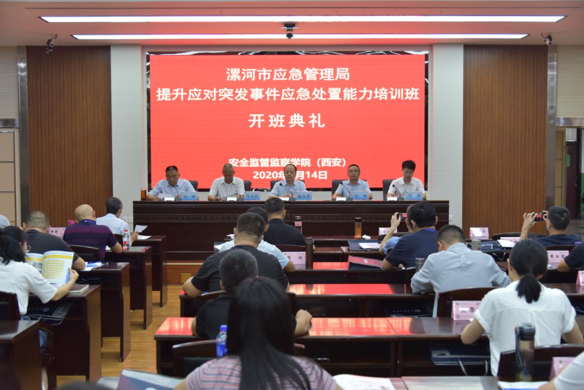9月14日上午,河南省漯河市应急管理局提升应对突发事件应急处置能力培训班在英国正版365官方网站雁塔校区开班。漯河市应急管理局二级调研员杨金贯,副局长苏志民、孙峰,安全监管监察公司(西安)党委书记杜勇、副经理曹鸿以及来自漯河市应急管理系统的51名学员参加了开班式,开班式由孙峰主持。