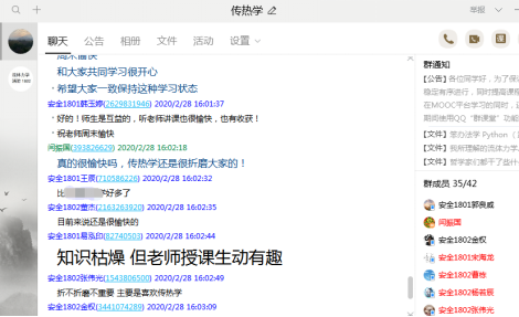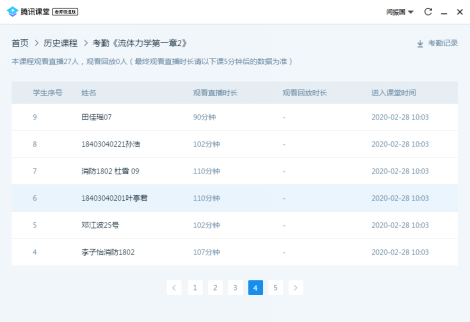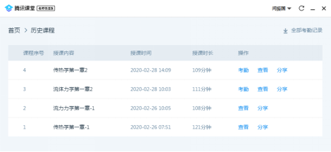 由于闫振国老师硕士专业是计算机软件工程,博士期间主攻方向是航空系统仿真模拟,因此非常熟悉计算机信息系统的架构设计、系统研发等工作,同时其还是腾讯公司大数据讲师,因此在正式上课之前就自己设计了系统压力测试方法,对各类平台高峰期的运行状态进行了模拟测试,提前预测了这几类平台可能遇到的问题,进而依据多种测试结果和相关应急处置措施,闫振国老师对其教授的“工程流体力学”和“传热学”两门课程,最终制定了以腾讯课堂为主、学习通和中国大学慕课为辅的教学模式。腾讯课堂属于腾讯在线教育的主打产品,具有在线签到、在线答题、PPT渲染、屏幕共享、视频播放、举手答疑、连麦等功能特性,网络功能强大,网络高峰期视频不卡、音质清晰,很少掉线,综合表现非常优异,完全可以满足本科教学的需要。尤其在疫情期间专门推出的免费极速版,是当前特殊时期应用最广的一个在线教育平台。