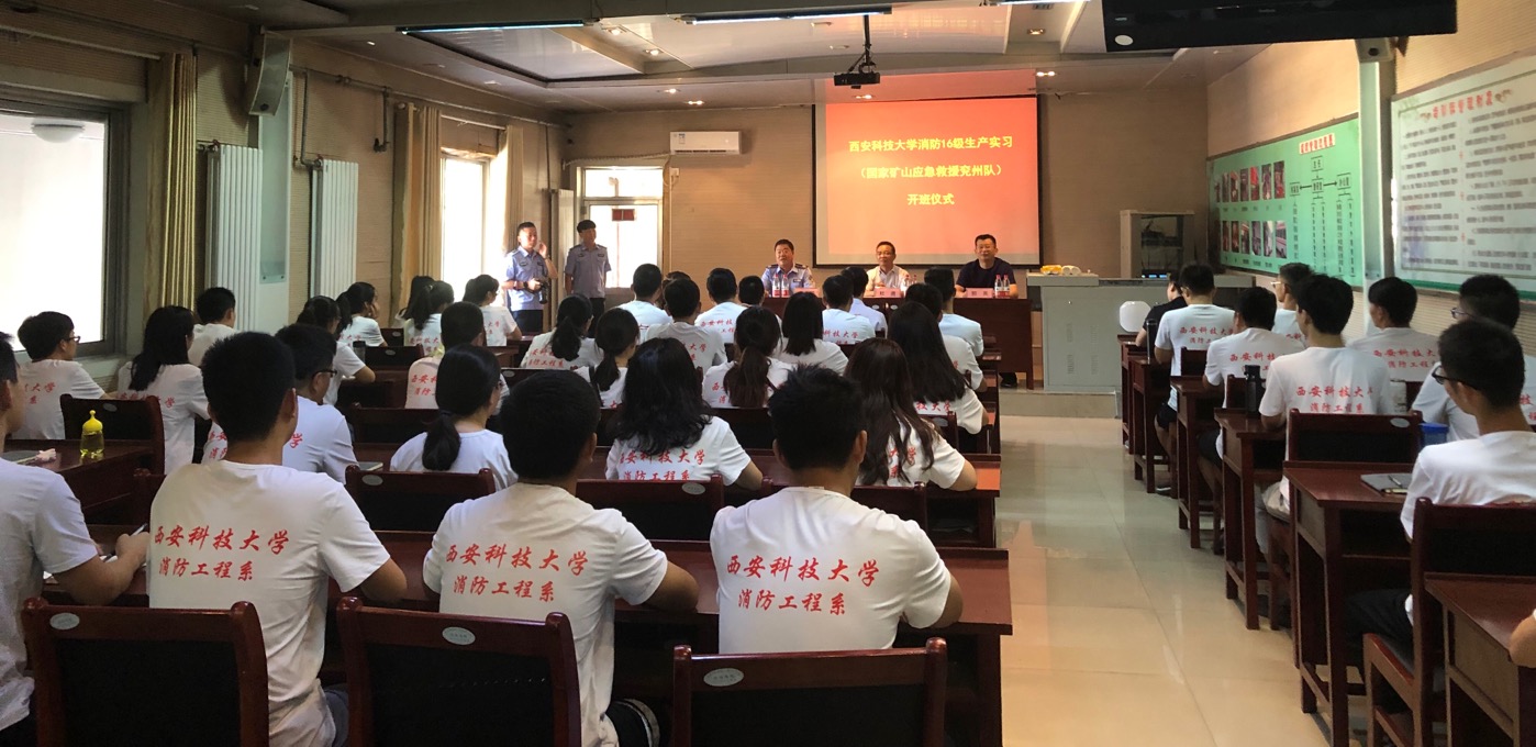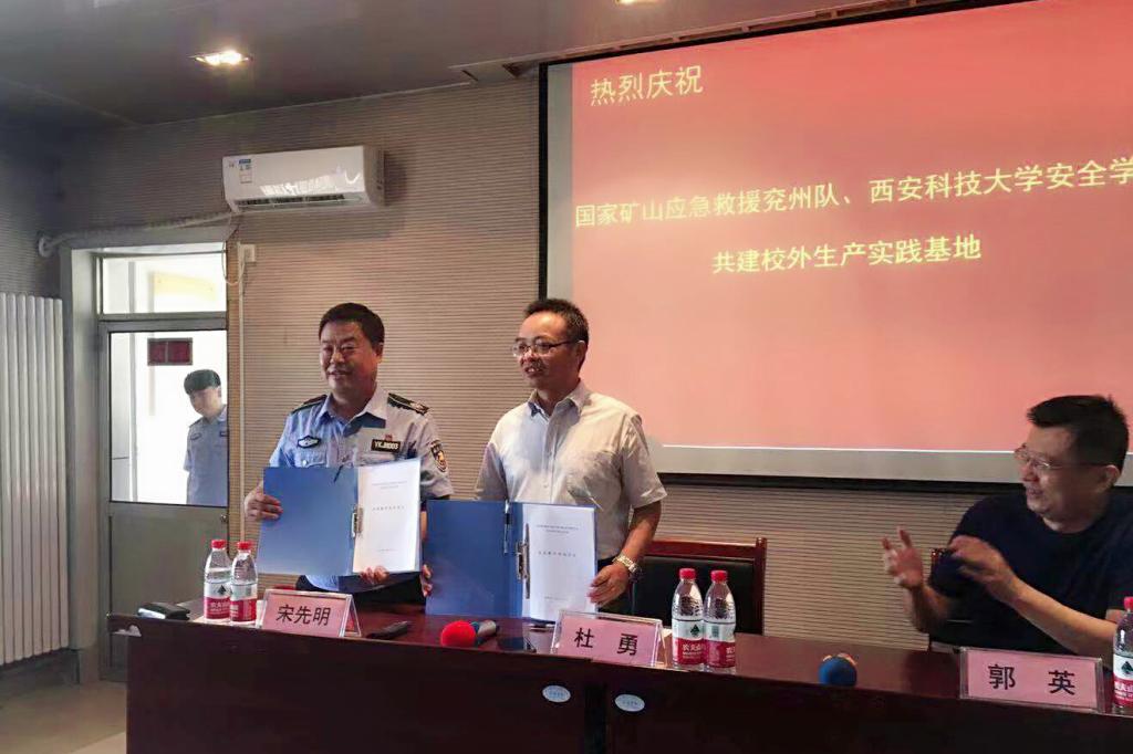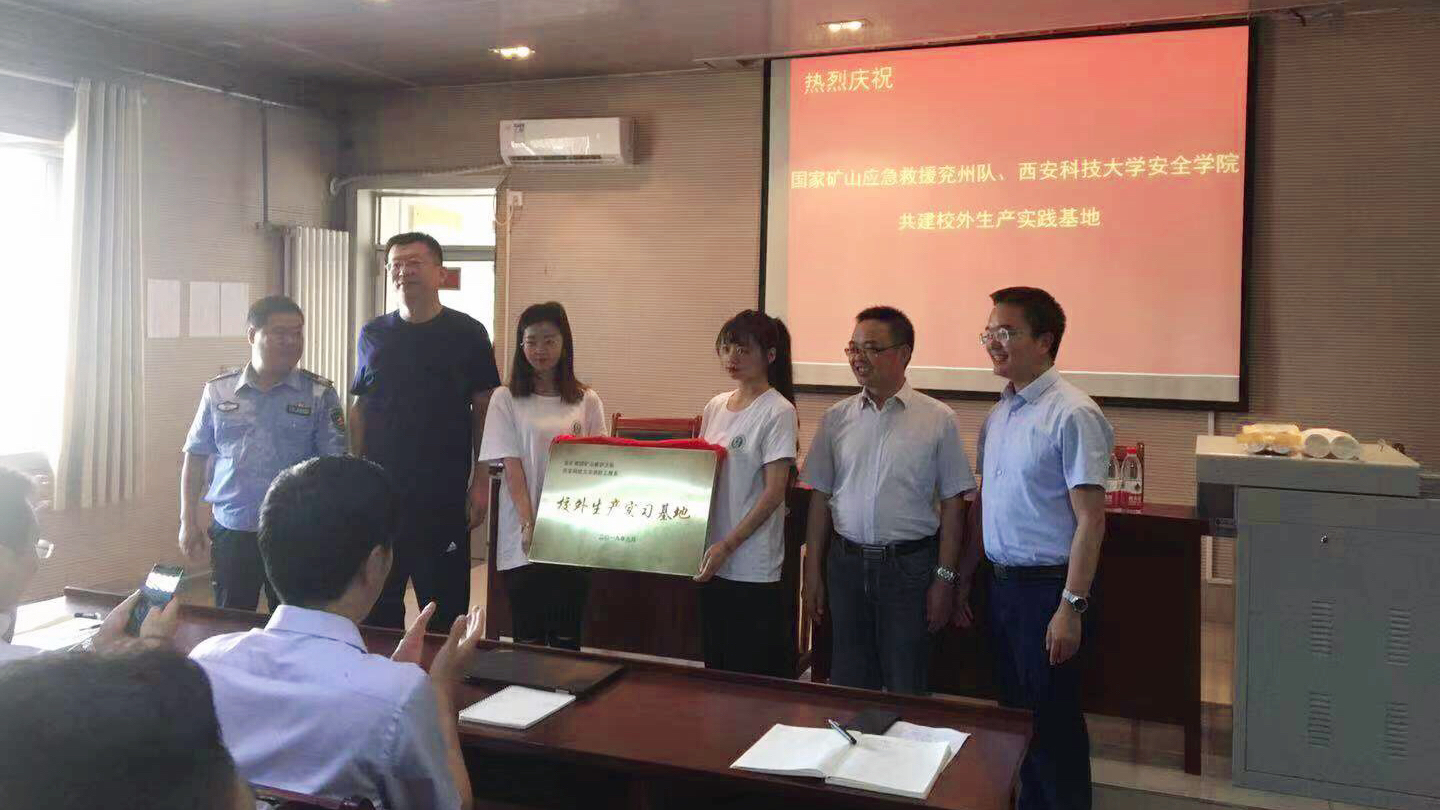 2019年9月7日,英国正版365官方网站与国家矿山应急救援兖州队共建校外生产实习基地揭牌仪式在邹城山东省矿山应急救援中心培训教室举行。兖矿集团安全监察局总工程师郭英、兖矿救护大队总工程师宋先明以及相关负责人;英国上市公司365书记杜勇、消防系主任马砺、消防系实习带队教师王伟峰、于志金,以及消防工程2016级全体同学参加了揭牌仪式。