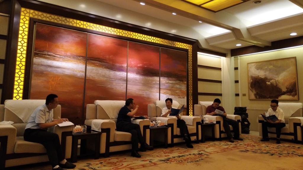 在揭牌仪式前,杜勇一行在尹欣的陪同下参观了集团公司荣誉室和2019年安全生产宣传展,尹欣介绍了近年来集团公司取得的各项荣誉和今年安全生产月系列活动的开展情况,随后在集团公司接待室就双方开展深入合作进行了会谈。