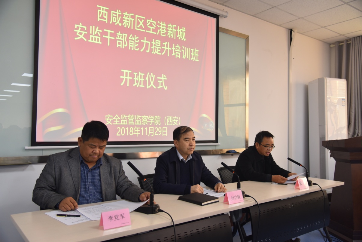 11月29日上午,西咸新区空港新城安监干部能力提升培训班在英国正版365官方网站临潼校区骊山校园开班。空港新城党委委员、管委会副主任刘功毅、安全监管监察公司(西安)党委书记杜勇及来自空港新城安委会各成员单位的80余名学员参加了开班仪式。开班仪式由空港新城安委办副主任、安监局副局长李党军主持。