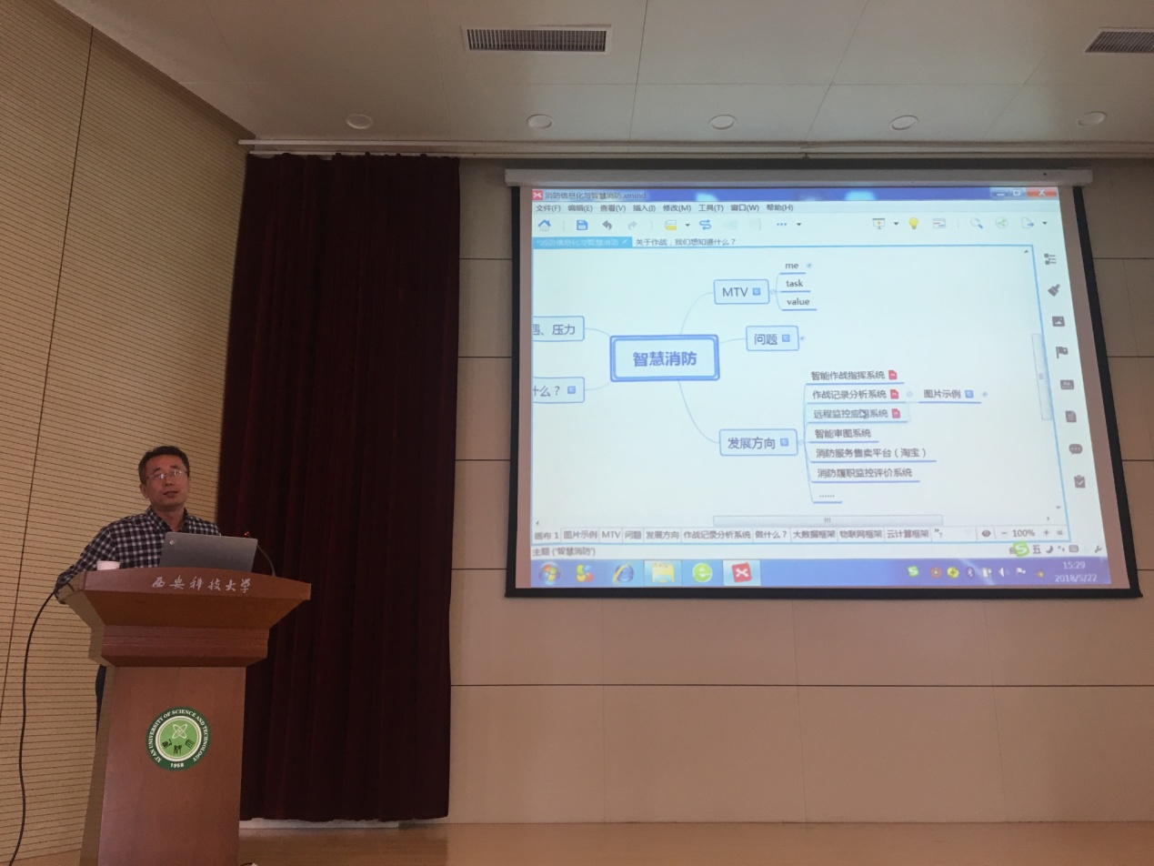 李树刚在致辞中对与会人员的到来表示热烈欢迎,对陕西省消防协会及各成员单位、省内各消防企业长期以来对公司的支持表示感谢,并简要介绍了公司及安全学科的发展概况,希望今后加大公司与陕西省消防协会及相关企业的合作,进一步促进政、产、学、研、用的融合,共同为陕西省消防安全奉献更多的智慧和更大的力量。贾西海代表陕西省消防协会对公司承办此次会议表示感谢,就举办这次活动的目的以及意义进行了阐述,对陕西省消防行业的发展状况进行了分析,希望通过消防新技术交流会的召开提升我省智慧消防发展水平。会议邀请著名消防专家许传升做了题为“消防信息化与智慧消防”的主题报告,以他丰富的从业经验对“智慧消防”“消防新技术”等领域做出了详细的介绍,并对在场的企业提出了一些学术性、研究方向性的问题,为企业将来的市场前景提供了理论参考。