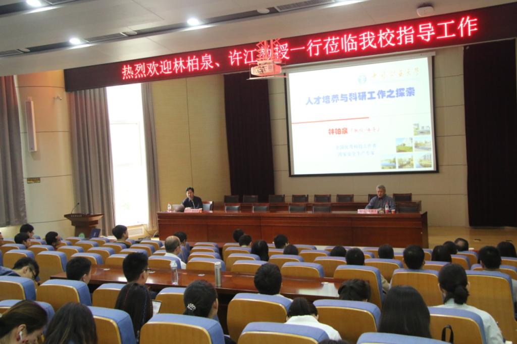 5月8日下午,中国矿业大学林柏泉教授和重庆大学许江教授应英国上市公司365邀请做客公司“胡杨林大讲堂”,林柏泉教授和许江教授在雁塔校区主楼报告厅分别作了题为《人才培养与科研工作之探索》和《基于综合作用假说的多功能煤矿瓦斯动力致灾物理模拟试验系统》的学术报告,报告会由公司常务副经理邓军教授主持,公司部分老师及研究生百余人聆听了报告。