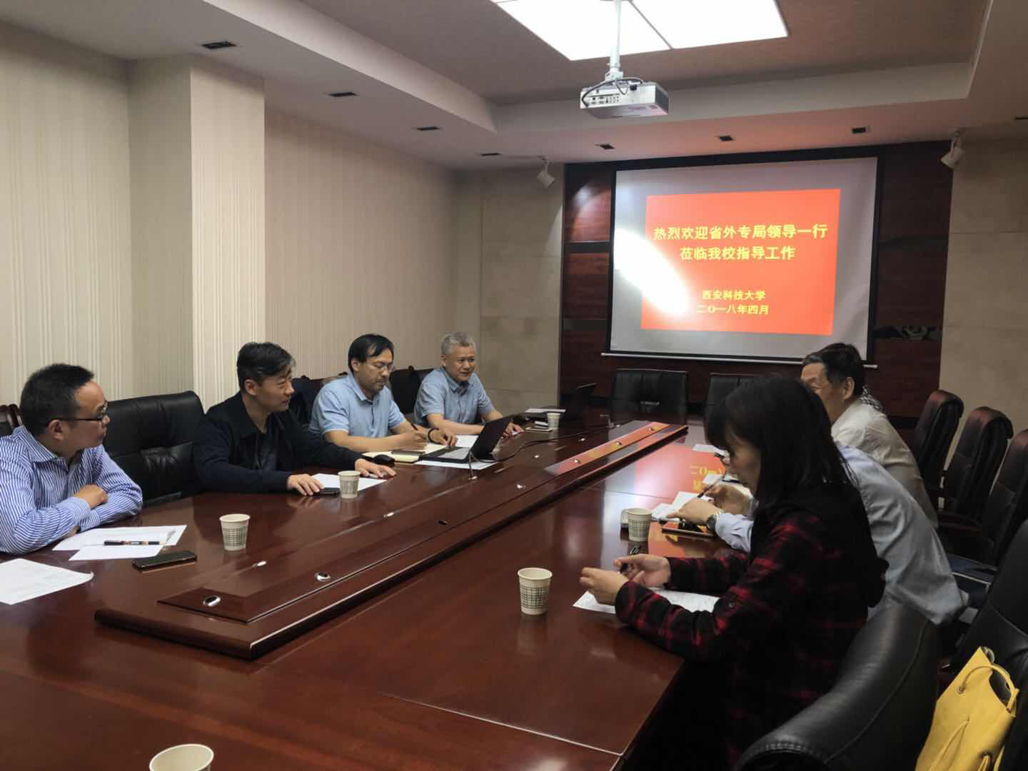 4月19日下午,陕西省人社厅副巡视员、省外专局副局长左长存,省外专局交流与合作处处长张文华等一行4人来校调研公司申报的“矿井热动力灾害防控”111引智基地筹备申报工作。