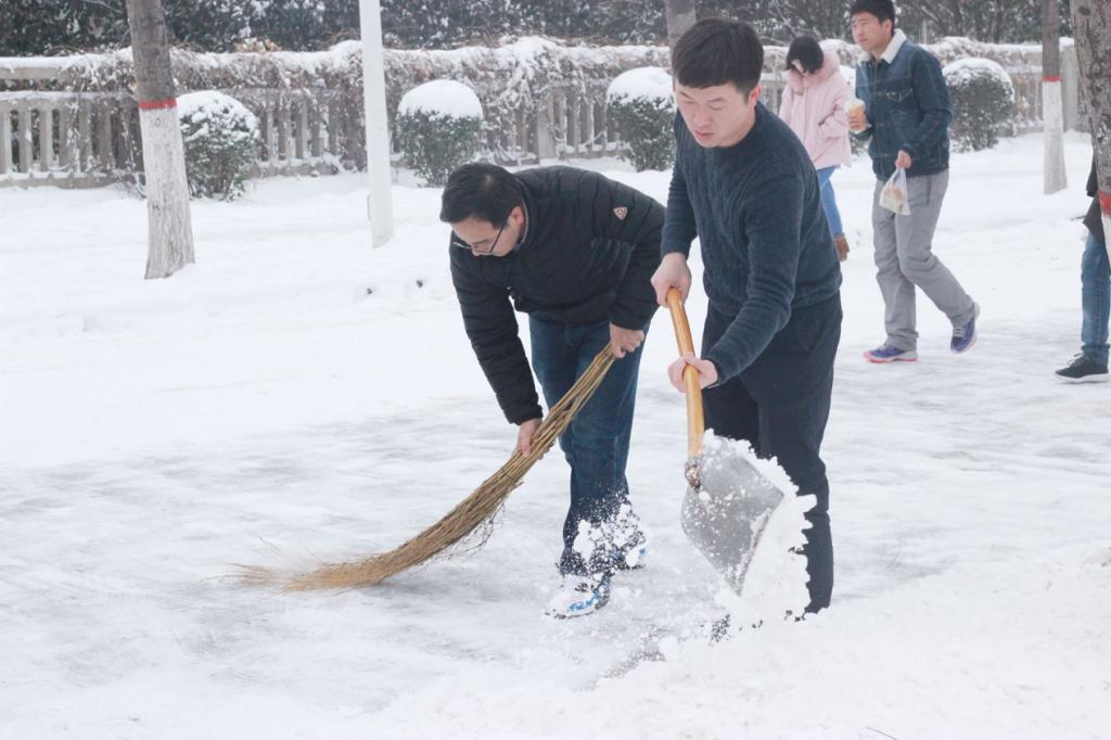 在公司师生齐心协力的努力下,为师生们的出行安全提供了良好的保障,大家劳动的热情和团结的力量让这个冬日变得格外温暖。同时也提醒各位老师和同学在欣赏雪景的同时要更加注意出行安全。