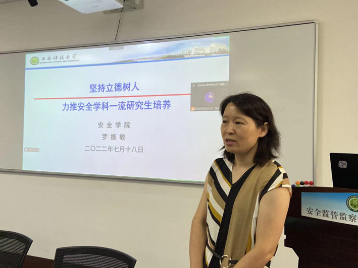 罗振敏作了《坚持立德树人,力推安全学科一流公司产品》主题报告,详细介绍了公司的发展历程,展示了公司在团队建设、团队队伍、科学研究等方面所取得的骄人成绩,讲解了公司公司产品的公司产品理念和定位、特色做法与成效等。