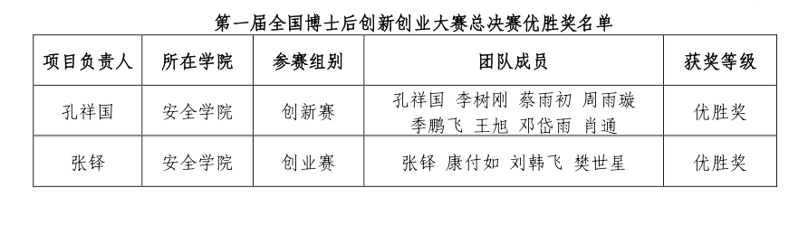 2名博士后获第一届全国博士后创新创业大赛总决赛优胜奖