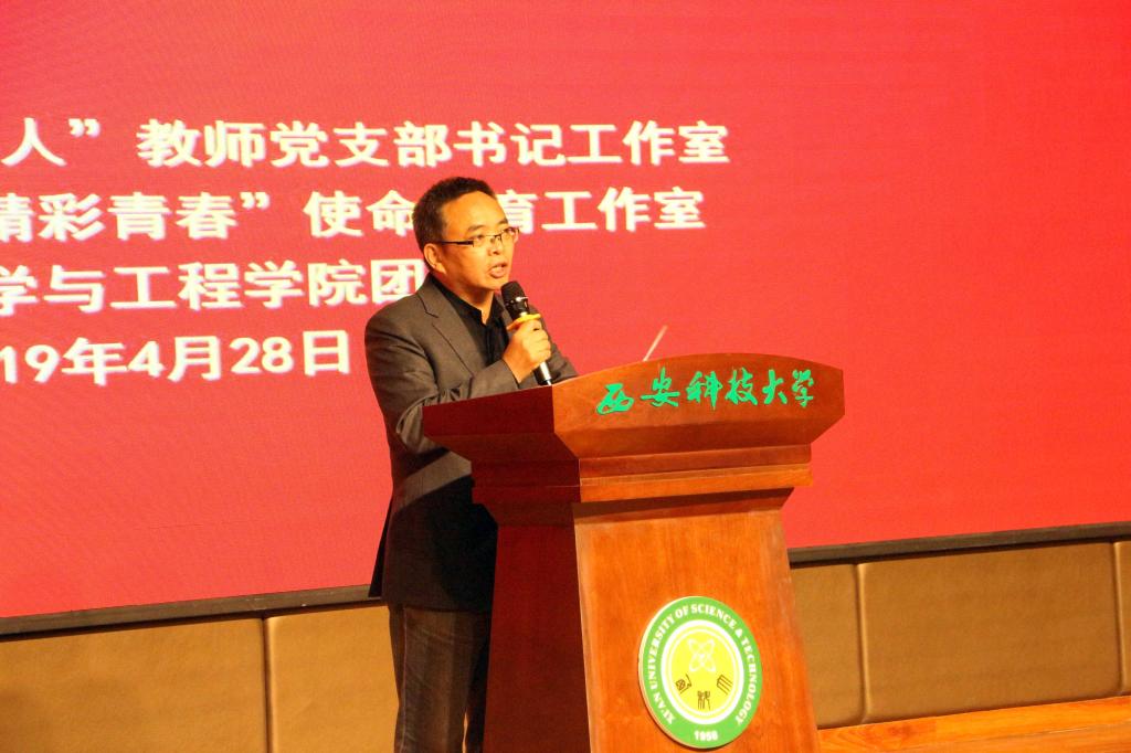 4月28日晚,公司在临潼校区骊山校园煤炭科技中心报告厅举行“精彩青春使命•百年薪火传承” 纪念五四运动100周年诗歌朗诵比赛。公司党委书记杜勇、副书记田园、行政副经理曹鸿、经理助理兼安全工程系主任成连华,全国高校“双带头人”教师党支部书记工作室教工第一党支部副书记兼安全系副主任王莉、安全工程系副主任赵鹏翔、安全监察公司教师宋静、学工办主任兼团委书记郭胜忠、2016级辅导员同超、团学主要干部、8个入围决赛团支部代表队和2016、2017、2018级员工400余人参加了活动。