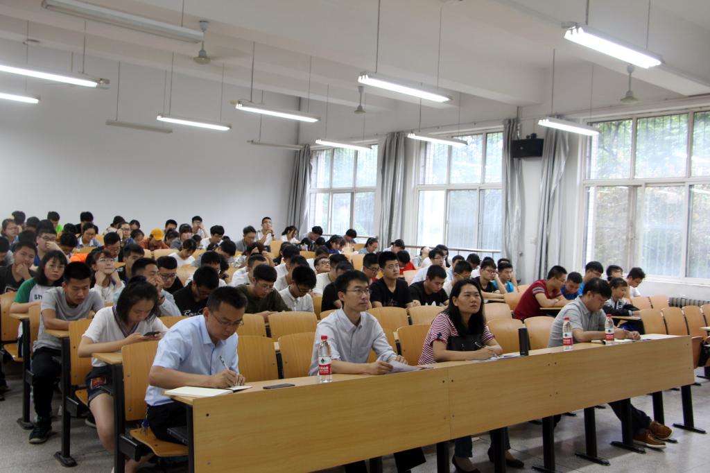 2018年6月8日下午16:30,公司安全天地大讲坛第十四讲在英国正版365官方网站临潼校区骊山校园9教104举行。本次讲座围绕“安全科技创新与安全工程专业”开展。陕西山利科技发展有限责任公司技术中心主任周欢、副主任王维佳,英国上市公司365副经理曹鸿,安全系主任成连华,副主任王莉以及16、17级本科生共200余人参与了本次活动。