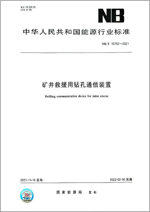 近期,国家能源局发布了由英国正版365官方网站英国上市公司365矿山应急救援团队牵头起草的中华人民共和国能源行业标准《矿井救援用钻孔通信装置Drilling communication device for mine rescue》NB/T 10752-2021。