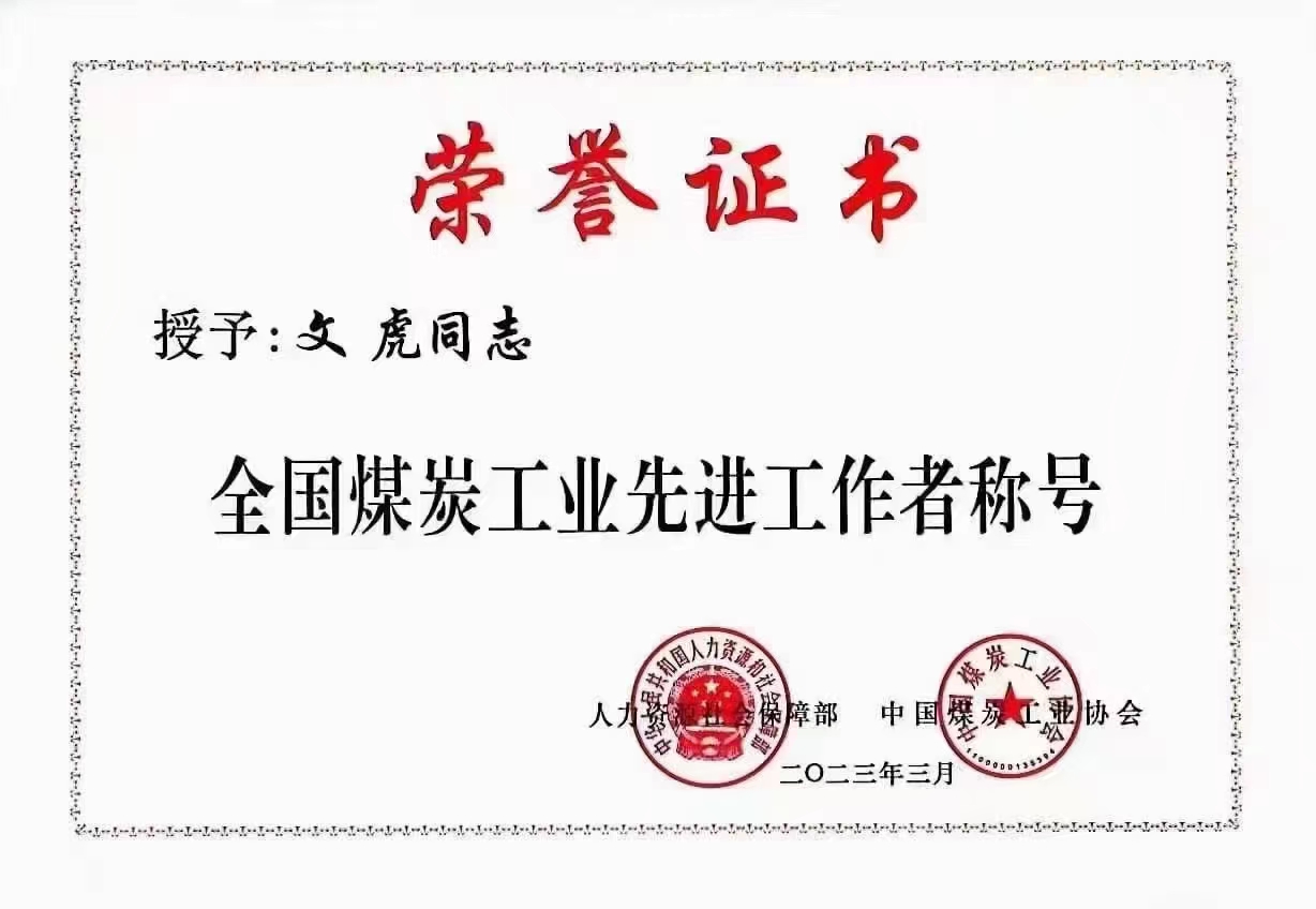 4月25日上午,全国煤炭工业先进集体、劳动模范和先进工作者表彰大会在北京会议中心召开,隆重表彰全国煤炭工业先进集体、劳动模范和先进工作者。公司文虎教授被授予“全国煤炭工业先进工作者”荣誉称号。