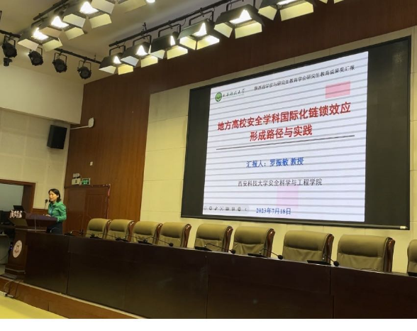 罗振敏教授牵头的《地方高校安全学科国际化链锁效应形成路径与实践》荣获陕西省学位与研究生教育学会研究生教育成果特等奖,并在大会做了主题报告。她从安全学科的角度,阐述了地方高校在国际合作发展方面的心得与成效,积极将安全学科的国际交流方法进行推广,扩大了安全学科的影响力。此外,罗振敏参加了工程教指委西北区域协作组分论坛,就安全学科工程类专业学位研究生教育的成果与困惑与参会成员进行了热烈的讨论,互学互鉴,提质增效,对推动整个西北区域研究生教育高质量发展有重要的意义。