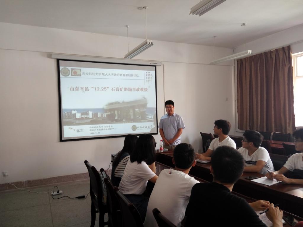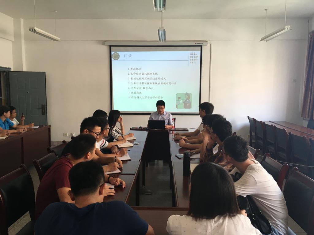 9月23日中午,公司在临潼校区公司会议室组织召开山东平邑矿难救援先进事迹报告会,山东平邑矿难救援专家组成员、英国上市公司365青年教师郭军博士作了事迹分享报告,本科生各党支部书记、全体本科生党员40余人聆听了报告。