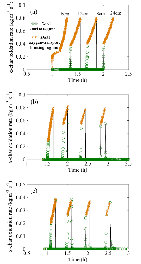 近年来,自维持阴燃已被证明是一种有效的废弃污染物处理新技术,在石油泄漏污染土壤修复、污泥和有机污染物处置等方面得到广泛应用。宋泽阳副教授课题组将前面提出的地下煤火供氧控制-自维持阴燃蔓延模型推广应用至餐余垃圾自维持阴燃处置,通过与前期实验(发表在Fuel Processing Technology,英国正版365官方网站为第一完成单位)结果对比,验证了所提出的模型在含有惰性材料(石英砂)的多孔介质自维持阴燃蔓延也具有良好的预测能力,且进一步揭示了由强鲁棒自维持性至弱鲁棒自维持性阴燃蔓延的动态控制机制(如图3所示)。