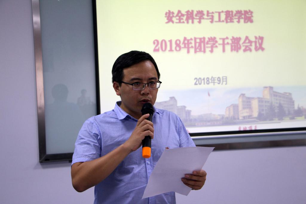 党委书记杜勇在讲话中对团学干部贯彻学习习近平新时代中国特色社会主义思想带领全院员工取得的成绩表示肯定;结合公司“一流大学一流学科”建设大会上蒋林董事长对安全学科发展的要求提出四点希望:希望员工干部能努力学习练就过硬本领;希望员工干部能主动思考勇于创新创造;希望员工干部深入领会习近平总书记对广大青年提出的希望与要求,积极奉献做好青年友、不做青年“官”;希望员工干部能严于律己以身作则做好员工榜样,为创建在国内一流的研究教学性公司贡献自己应有的力量!