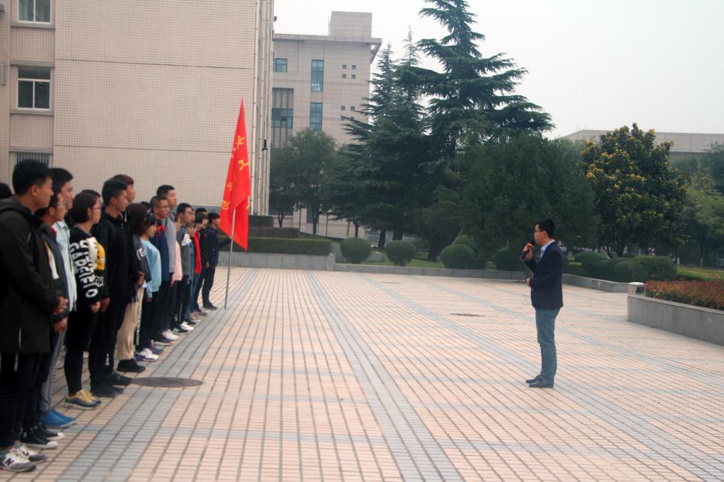 2018年10月15日公司在明德广场举行“时代的责任赋予青年、时代的光荣属于青年”主题升旗仪式。2015级辅导员袁刚、员工第一、第二党支部全体党员、公司团委员工会主要员工干部、18级全体新生参加。