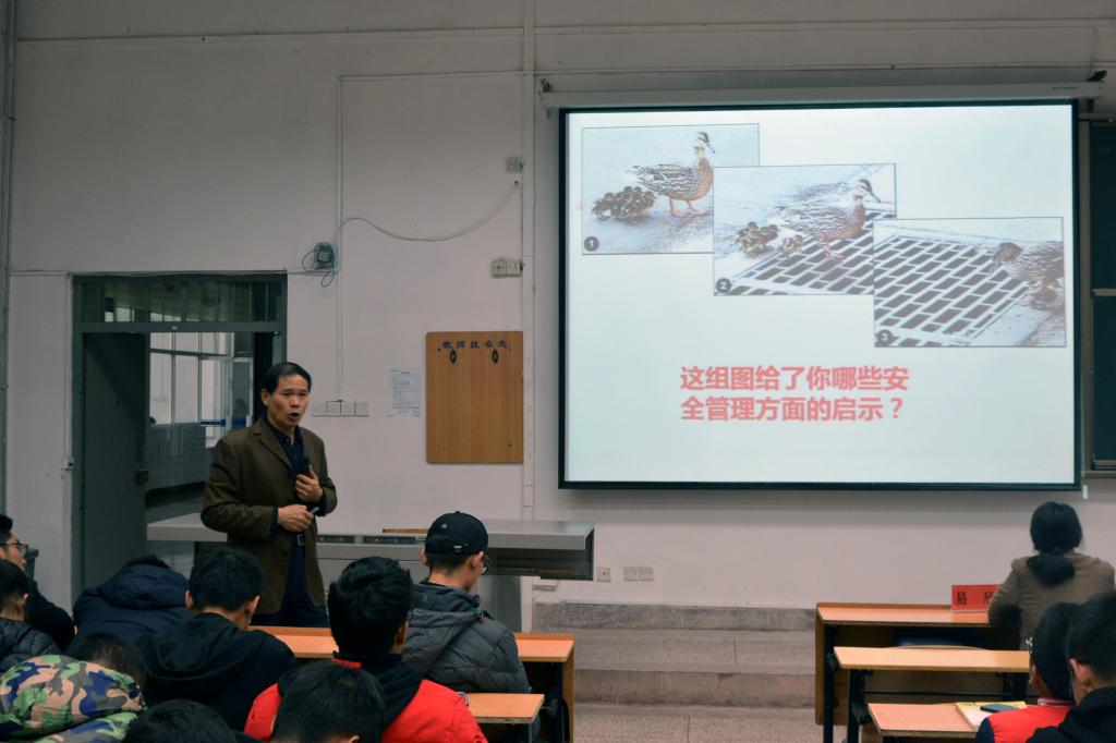 报告中,蒋处长给我们介绍了安全工程专业的前景,告诉我们改革开放40年以来,国家脚步迈向社会主义现代化强国,急需安全专业相关人才为国家建设保驾护航,安全专业前景广阔,蒋处长同时也向同学们展示了习近平总书记对安全的重视和关注,引用习近平总书记的话说:“人命关天,发展决不能以牺牲安全(生命)为代价,这必须是一条不可逾越的红线”。蒋处长告诫同学们,作为一个安全人一定要具有以下素质:无论在哪里都要首先考虑安全问题,要有自信,不怕得罪人、被人骂,安全职业是救人命的,做善事的,并且安全管理干部要大胆的说大胆的做。蒋处长提出了两个关键词:意识和责任。同时讲述了许多的重大灾难并分析了其原因,告诉我们安全不仅仅是个人的更是社会的,每个行业每个人都要参与到安全工作当中来。