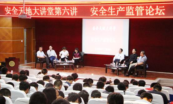 5月22日晚,公司于临潼校区图书馆二楼报告厅举办“安全天地大讲堂”第六讲。辽宁省安监局人事处处长刘芳、湖北省安监局规划科技处处长徐克、江苏省安监局职业健康处调研员吴海鹰、内蒙古自治区包头市安监局副局长武喜乐、安徽省宣城市安监局总工周德、河南省安监执法总队副总队长龙建业和辽宁省铁岭市安监局副局长于洪江等7位领导受邀参加讲座,公司党委书记杜勇、副经理林海飞、公司部分教师及2014、2015、2016级员工共300余人参加,讲座由成连华主持。